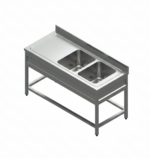 STAINLESS STEEL DOUBLE BOWL SINK WITHOUT UNDERSHELF WITH BACK SPLASH