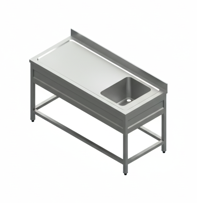 STAINLESS STEEL SINGLE BOWL SINK WITHOUT UNDERSHELF WITH BACK SPLASH