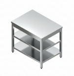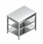 Be the first to review “STAINLESS STEEL TABLE WITH UNDER & MIDDLE SHELF & WITHOUT BACK SPLASH” Cancel reply